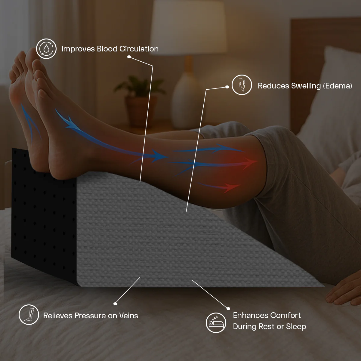 •  Versatile Usage: Can be used for Sleeping with head or torso elevated, Leg elevation for circulation and recovery, Reading, watching TV, or lounging in bed